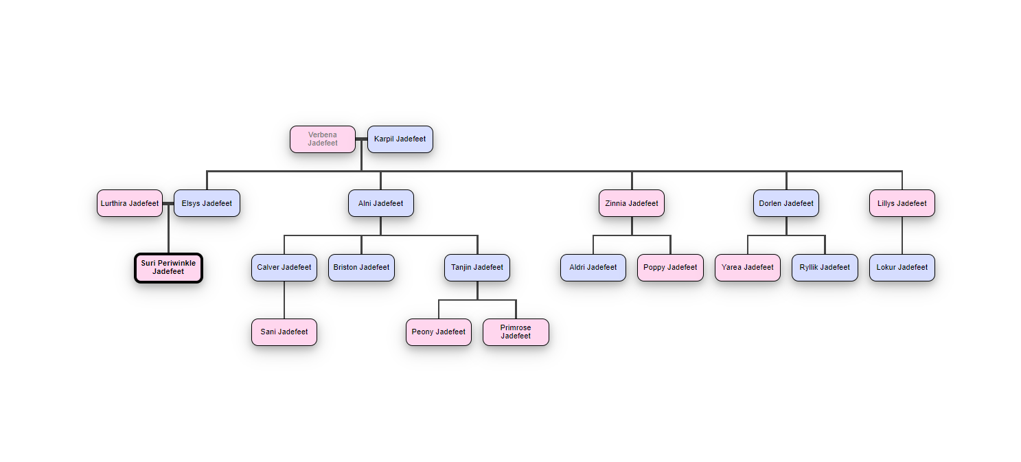 Suri se narodila do slavného klanu Jadefeetů, který se proslavil výrobou kvalitních a luxusních šperků. Rodinný podnik založil Suriin dědeček Karpil Steel Claw Jadefeet po tom, co se rozhodl skončit s životem dobrodruha a usadit se.